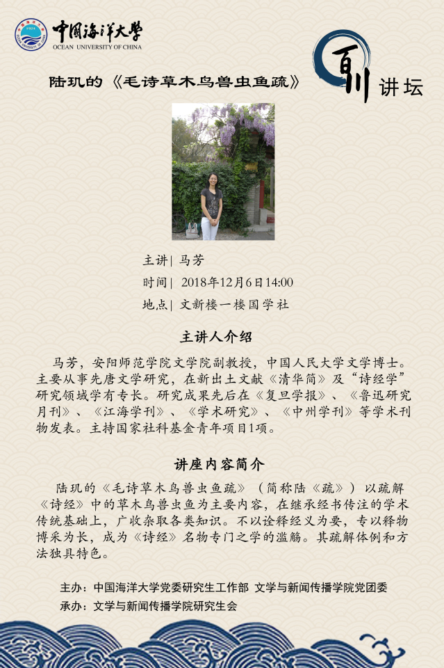 研究生百川講壇-馬芳:陸璣的《毛詩(shī)草木鳥獸蟲魚疏》