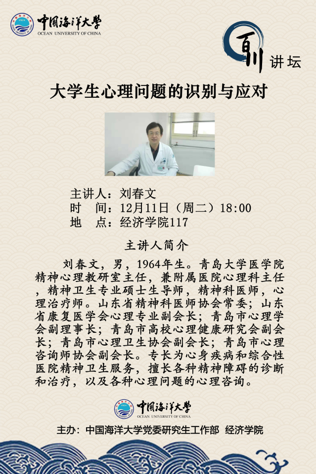 研究生百川講壇-劉春文:大學生心理問題的識別與應對