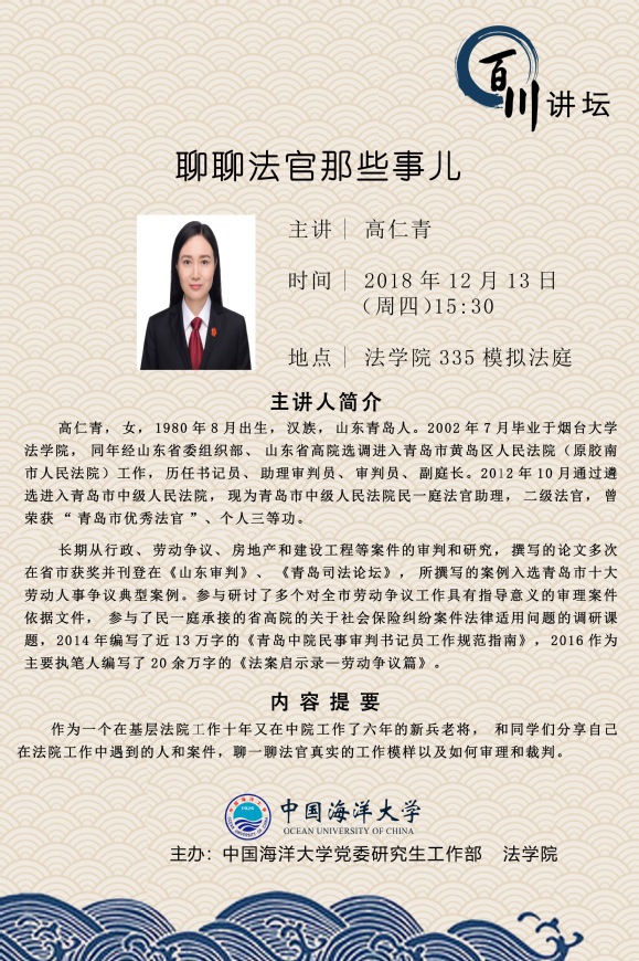 研究生百川講壇-高仁青:聊聊法官那些事兒