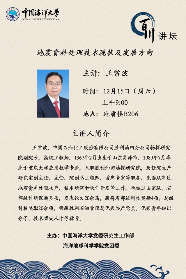 研究生百川講壇-王常波:地震資料處理技術現狀及發展方向