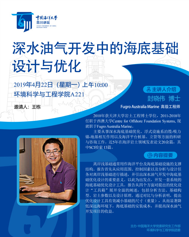 研究生百川講壇-封曉偉:深水油氣開發中的海底基礎設計與優化