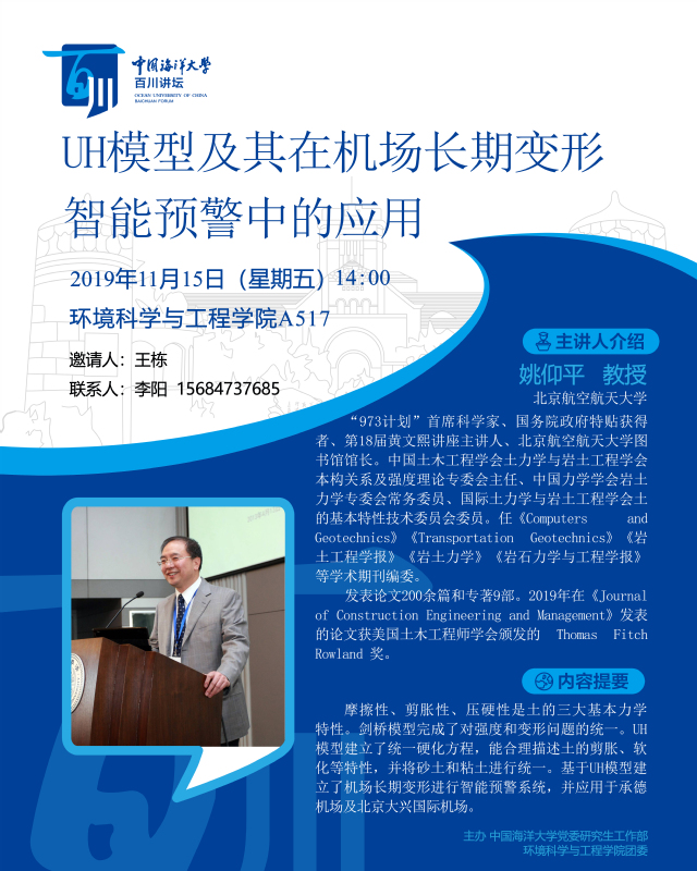 研究生百川講壇-姚仰平:UH模型及其在機場長期變形智能預警中的應用