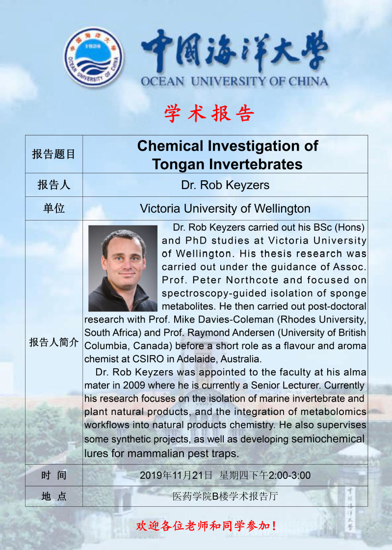 報告題目:Chemical Investigation of Tongan Invertebrates