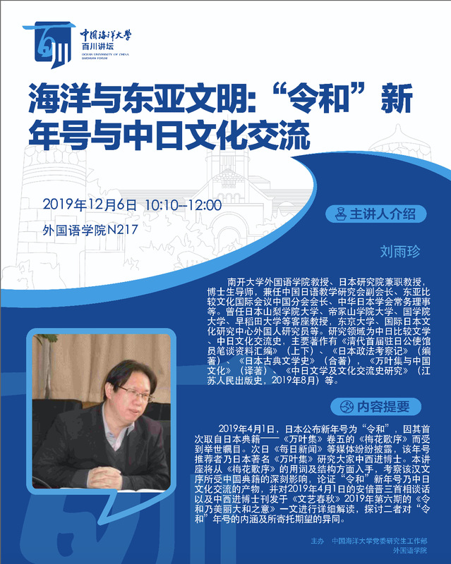 研究生百川講壇-劉雨珍:海洋與東亞文明:“令和”新年號與中日文化交流