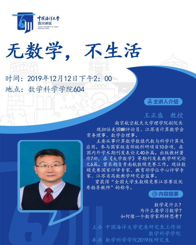 研究生百川講壇-王正盛:無數(shù)學(xué),不生活