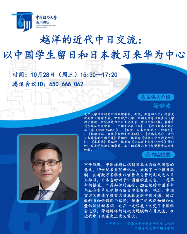 研究生百川講壇-徐靜波:越洋的近代中日交流:以中國學生留日和日本教習來華為中心
