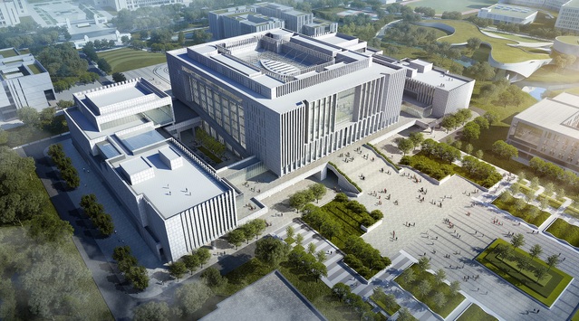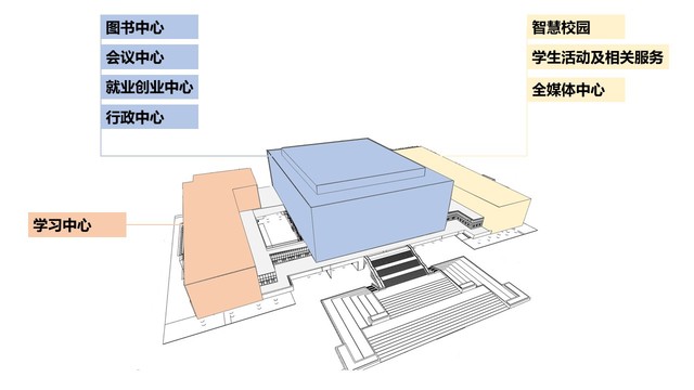 西海岸校區(qū)鳥(niǎo)瞰圖 學(xué)習(xí)綜合體是西海岸校區(qū)一期建設(shè)項(xiàng)目,位于校區(qū)東地塊核心位置,總建筑面積約10.2萬(wàn)平方米,其中地上建筑面積約9萬(wàn)平方米,地下建筑面積約1.2萬(wàn)平方米。南北毗鄰“山海通廊”,定位世界一流大學(xué)標(biāo)志性建筑,致力于打造面向未來(lái)的學(xué)習(xí)、交流、文化與服務(wù)中心。