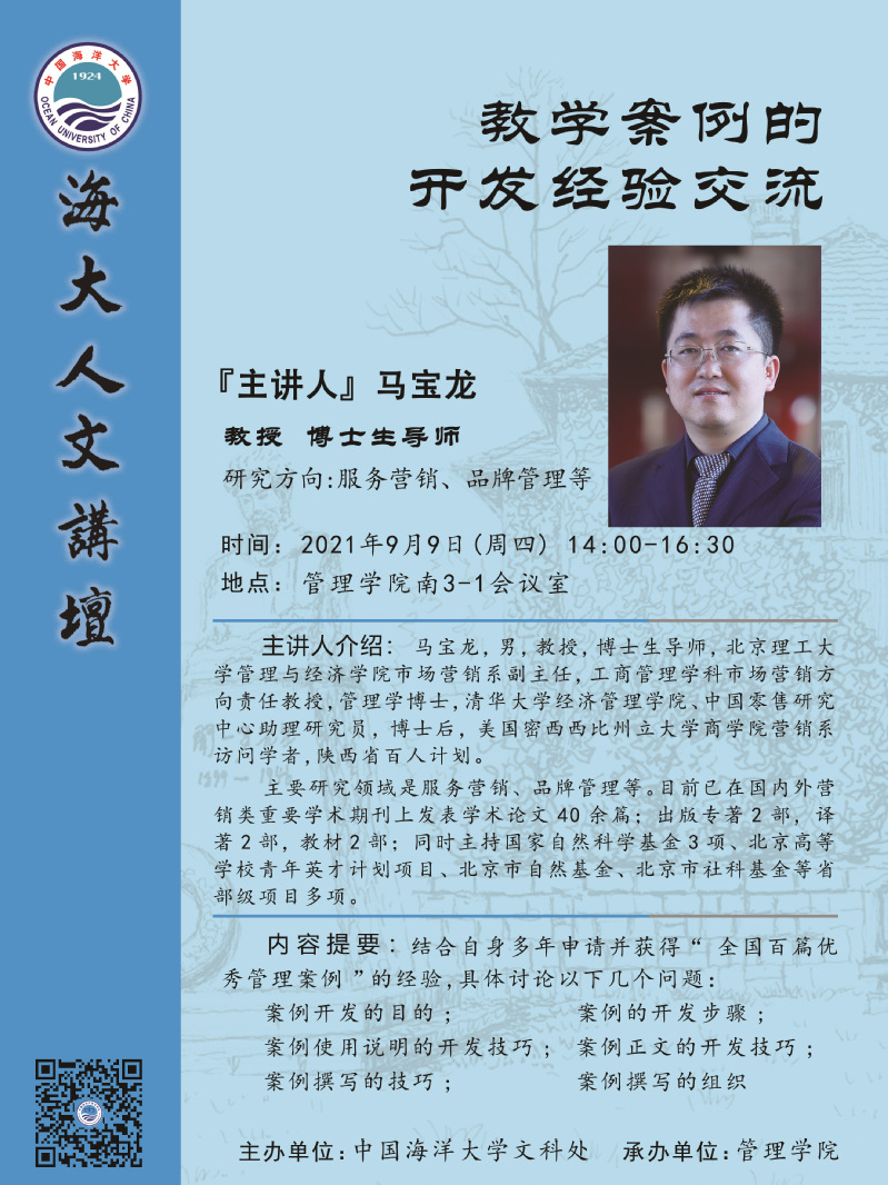 海大人文講壇2021年第62講-馬寶龍:教學(xué)案例的開發(fā)經(jīng)驗(yàn)交流