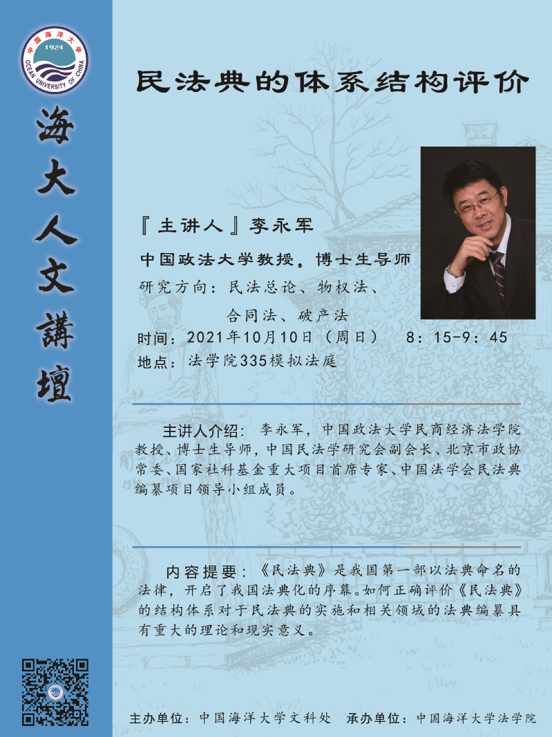海大人文講壇2021年第70講-李永軍:民法典的體系結構評價