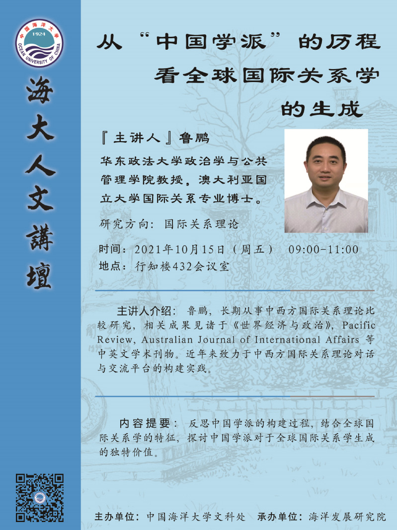 海大人文講壇2021年第72講-魯鵬:從“中國學派”的歷程看全球國際關系學的生成