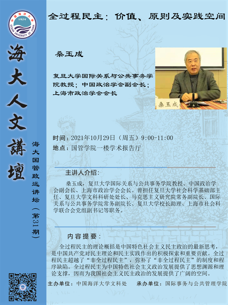 海大人文講壇2021年第82講-桑玉成:全過程民主:價值、原則及實踐空間