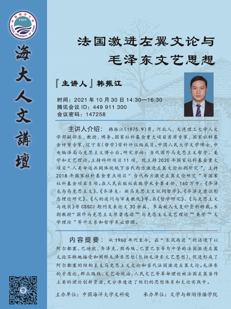 海大人文講壇2021年第83講-韓振江:法國激進左翼文論與毛澤東文藝思想