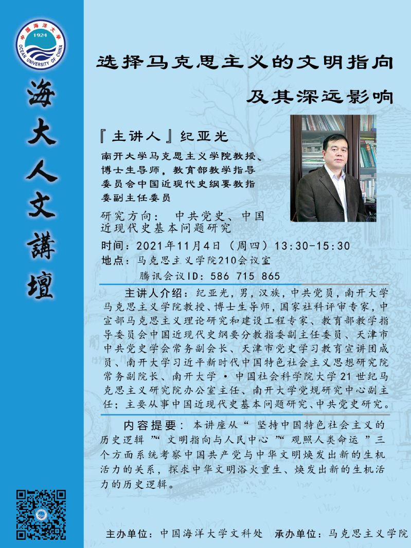 海大人文講壇2021年第85講-紀(jì)亞光:選擇馬克思主義的文明指向及其深遠影響
