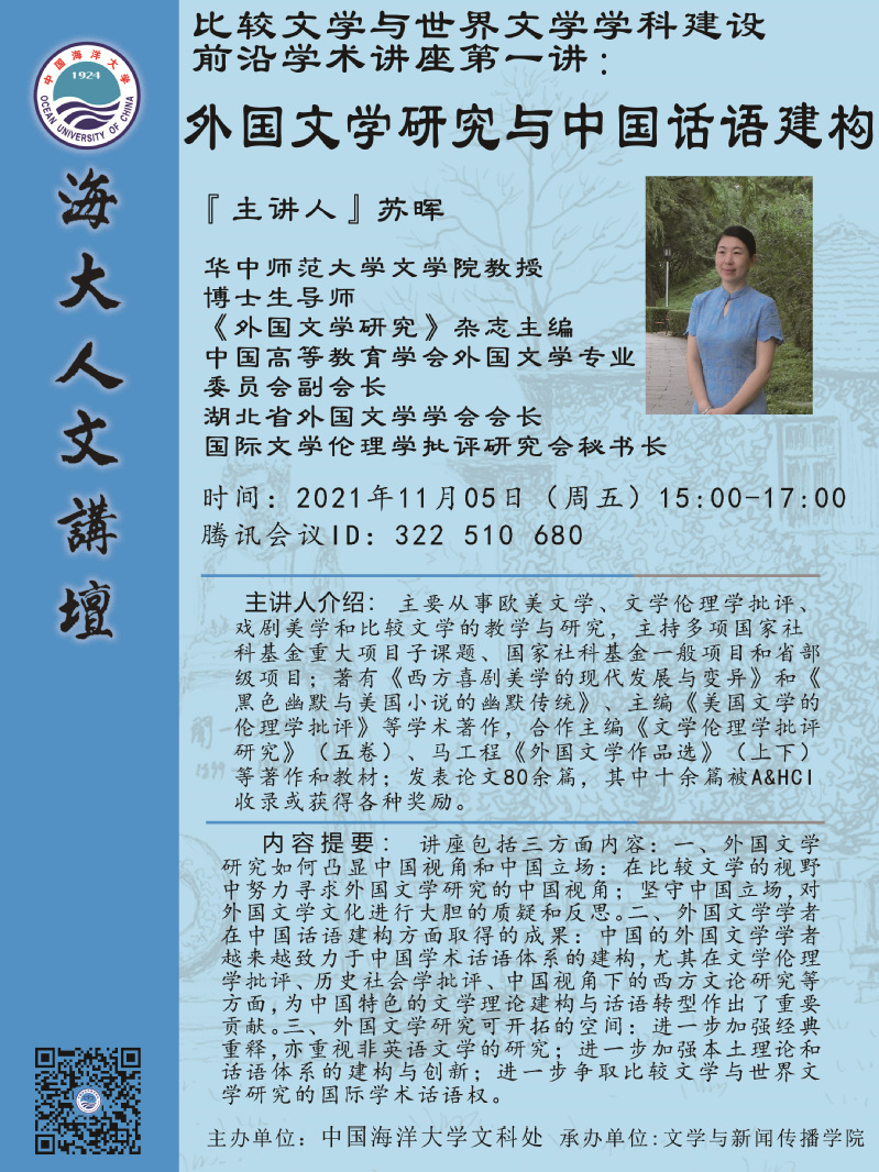 海大人文講壇2021年第86講-蘇暉:外國文學研究與中國話語建構