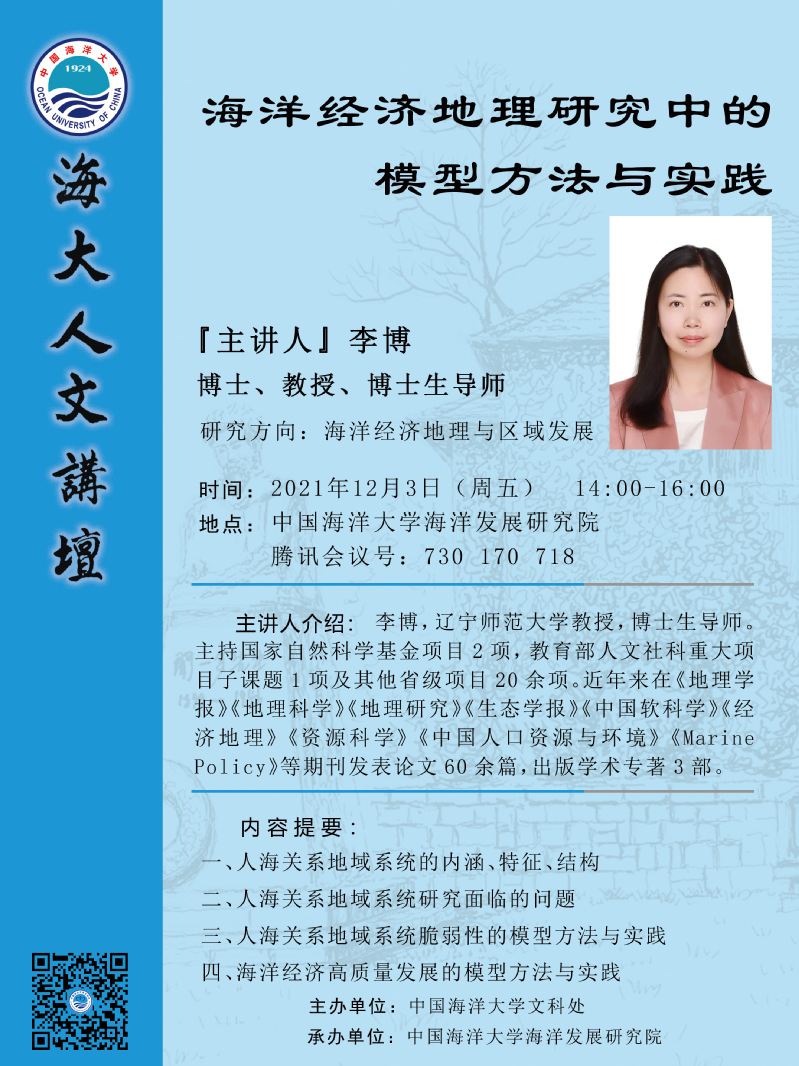 海大人文講壇2021年第96講-李博:海洋經濟地理研究中的模型方法與實踐