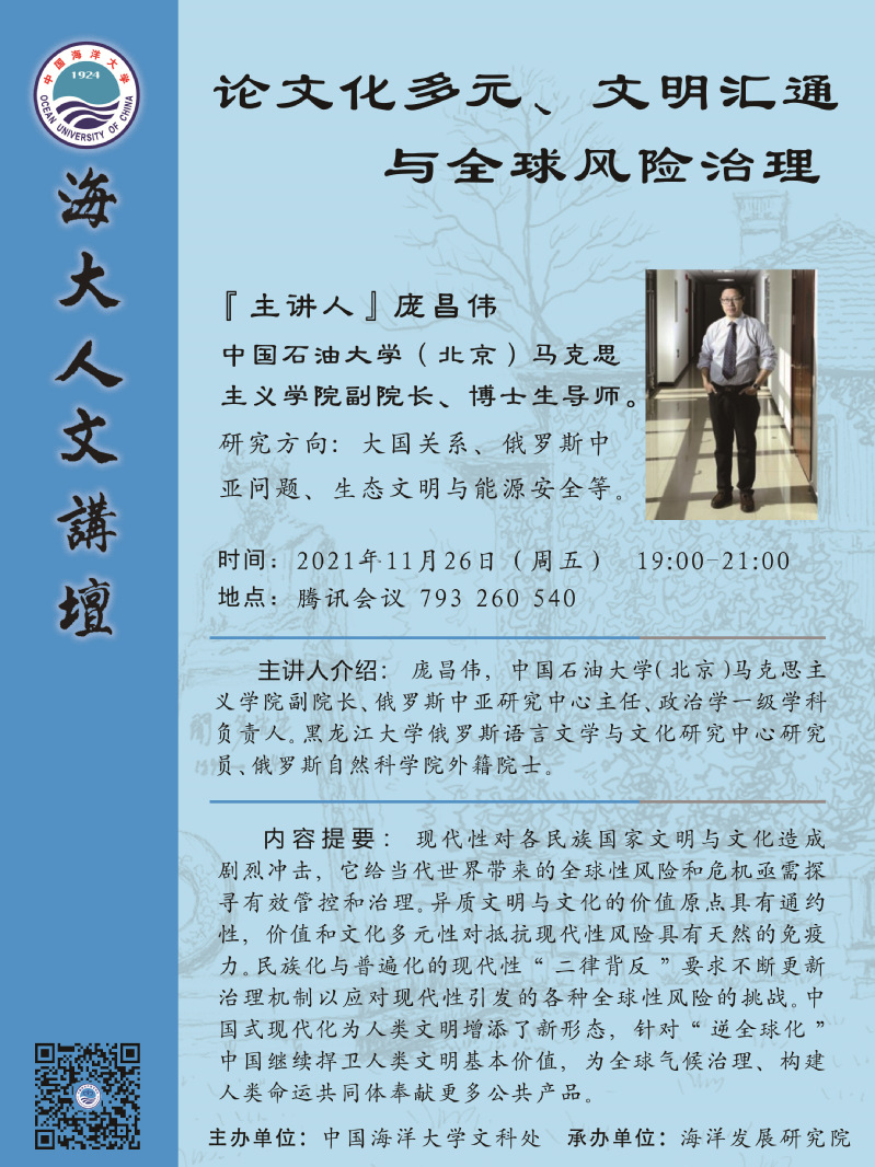 海大人文講壇2021年第95講-龐昌偉:論文化多元、文明匯通與全球風(fēng)險(xiǎn)治理