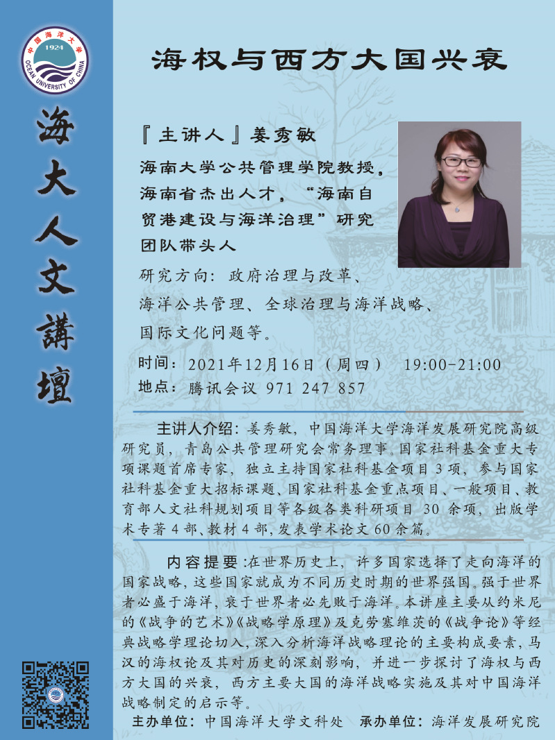 海大人文講壇2021年第101講-姜秀敏:海權與西方大國興衰