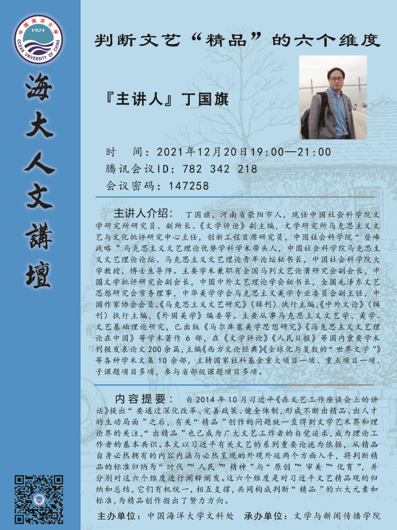 海大人文講壇2021年第105講-丁國旗:判斷文藝“精品”的六個維度
