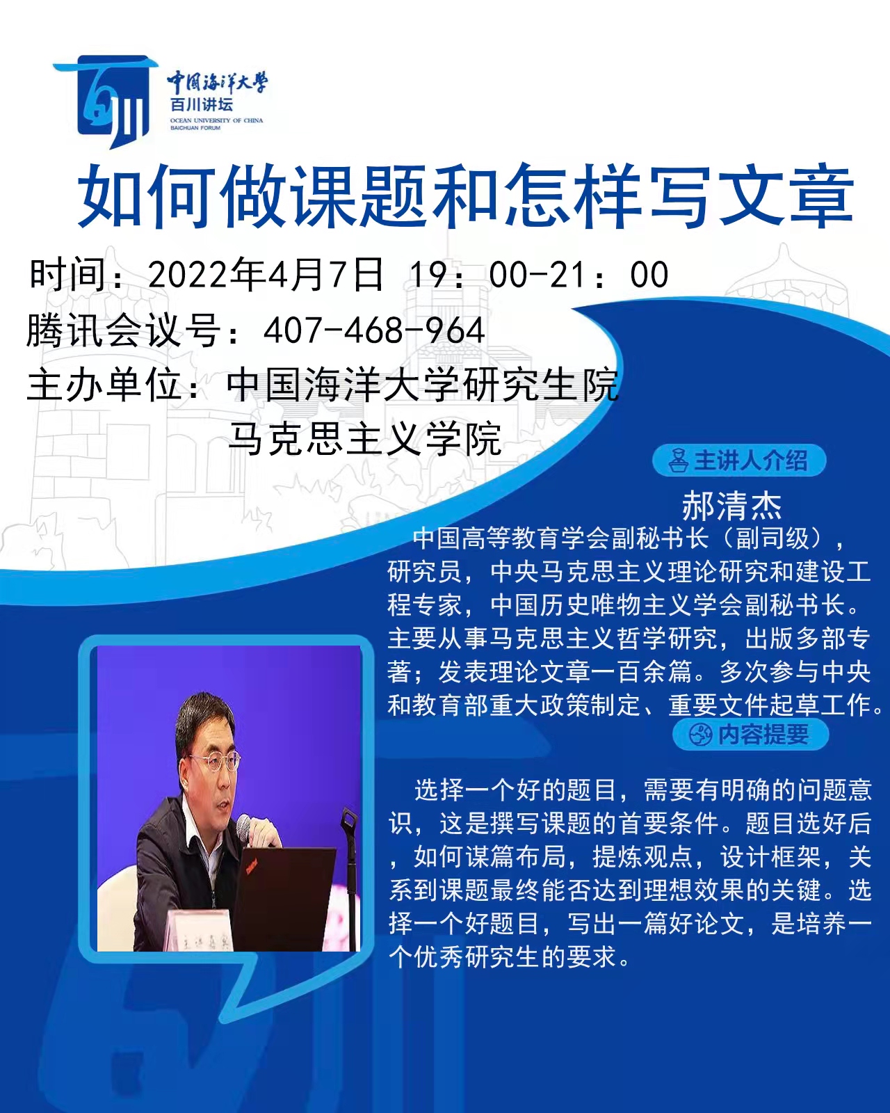 研究生百川講壇第159講-郝清杰:如何做課題和怎樣寫文章