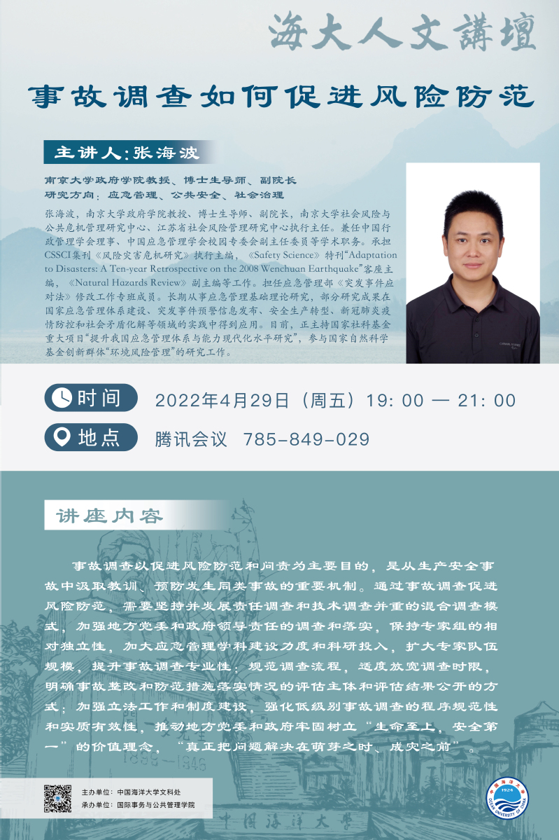 海大人文講壇2022年第4講-張海波:事故調查如何促進風險防范