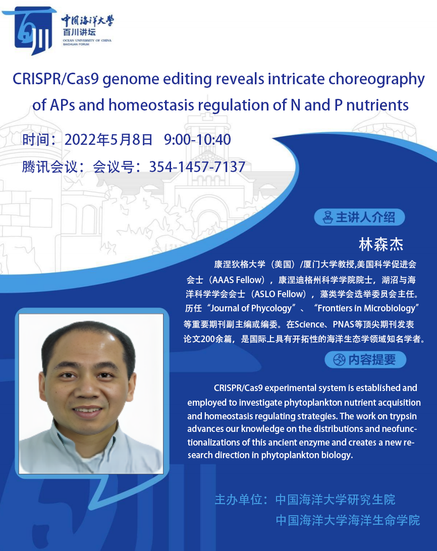 研究生百川講壇第165講-林森杰:CRISPR/Cas9基因編輯技術揭示了APs的復雜編輯以及N和P營養素的內穩態調節