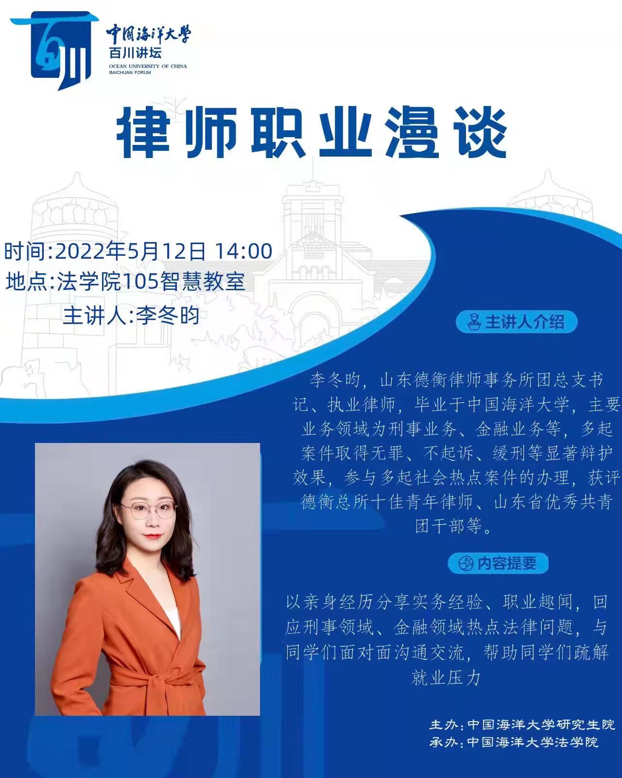 研究生百川講壇第166講-李冬昀:律師職業漫談之Ⅰ