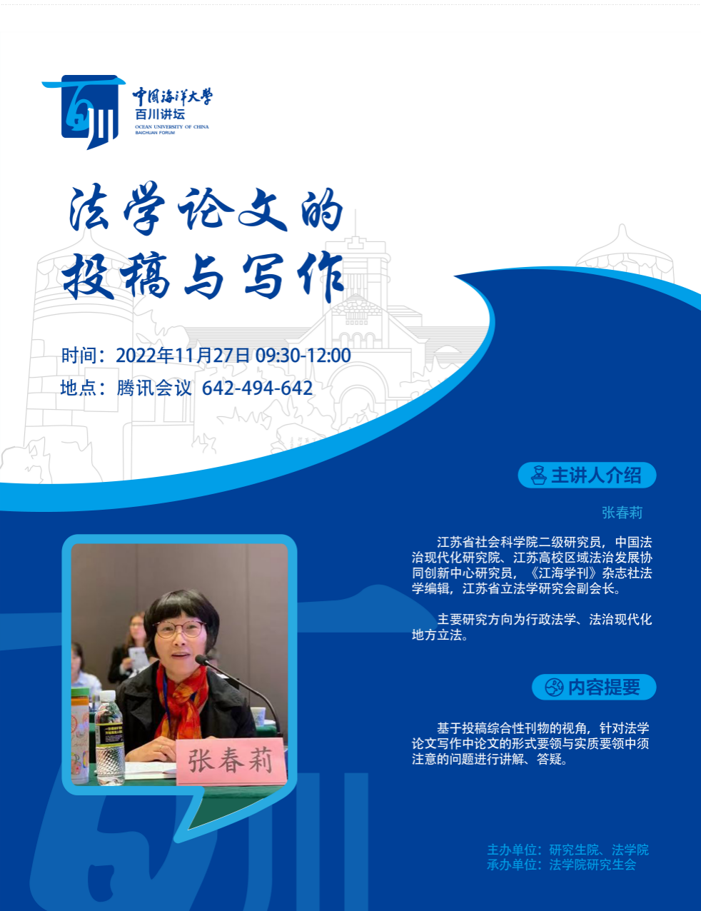 研究生百川講壇第187講-張春莉:法學論文的投稿與寫作