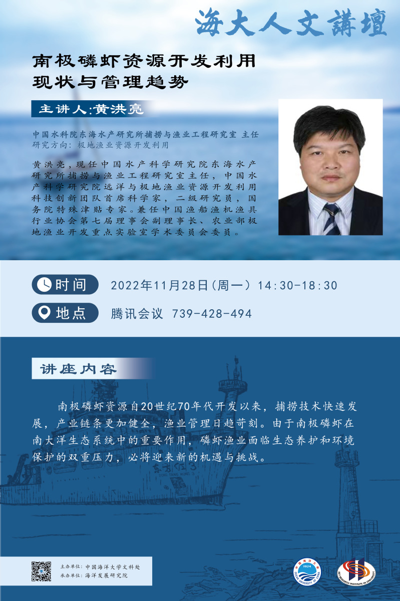 海大人文講壇2022年第26講-黃洪亮:南極磷蝦資源開(kāi)發(fā)利用現(xiàn)狀與管理趨勢(shì)