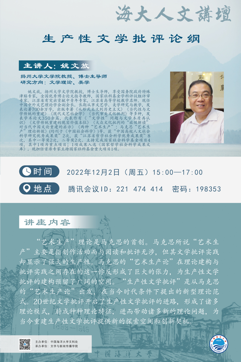 海大人文講壇2022年第30講-姚文放:生產性文學批評論綱
