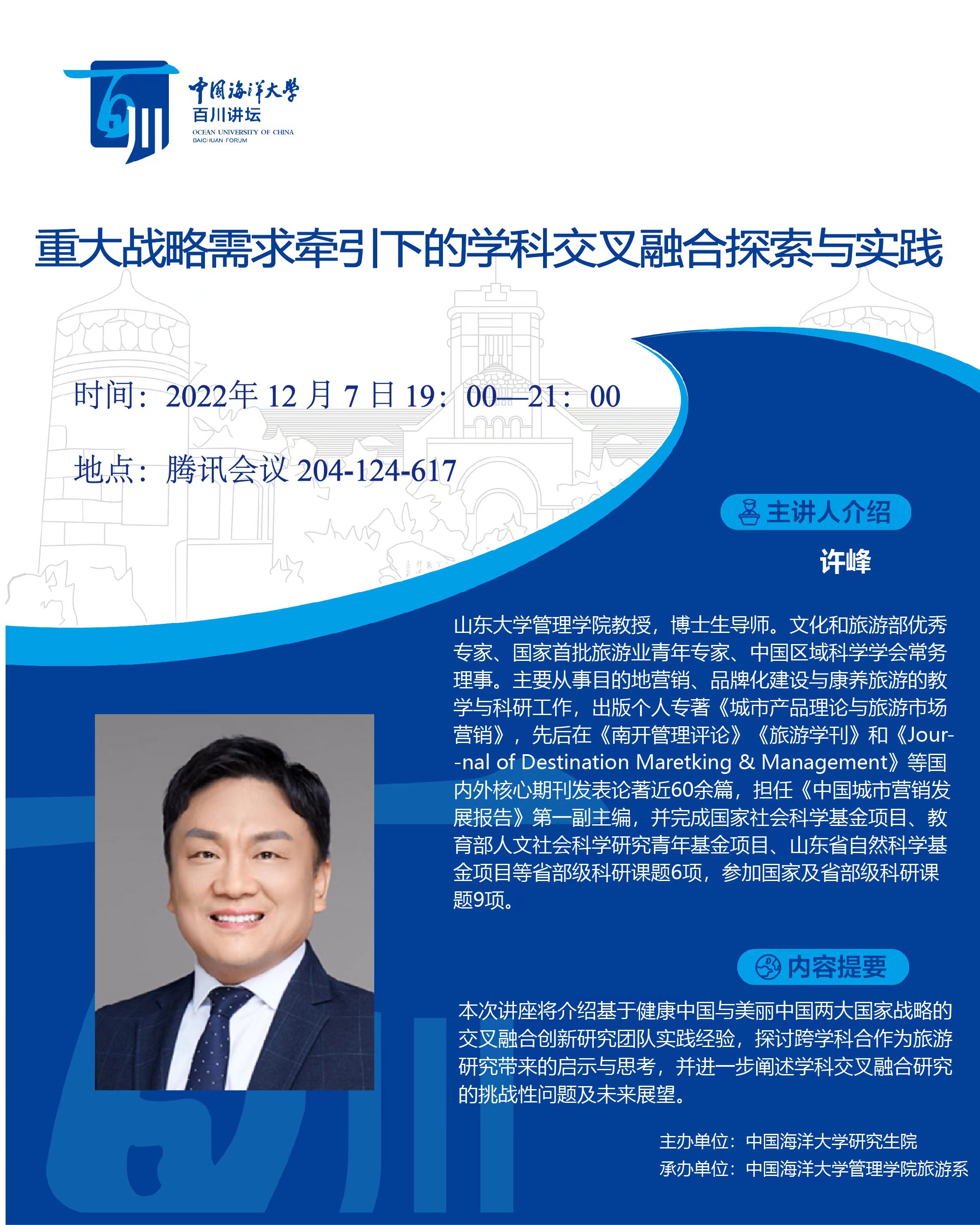研究生百川講壇第191講-許峰:重大戰(zhàn)略需求牽引下的學(xué)科交叉融合探索與實(shí)踐