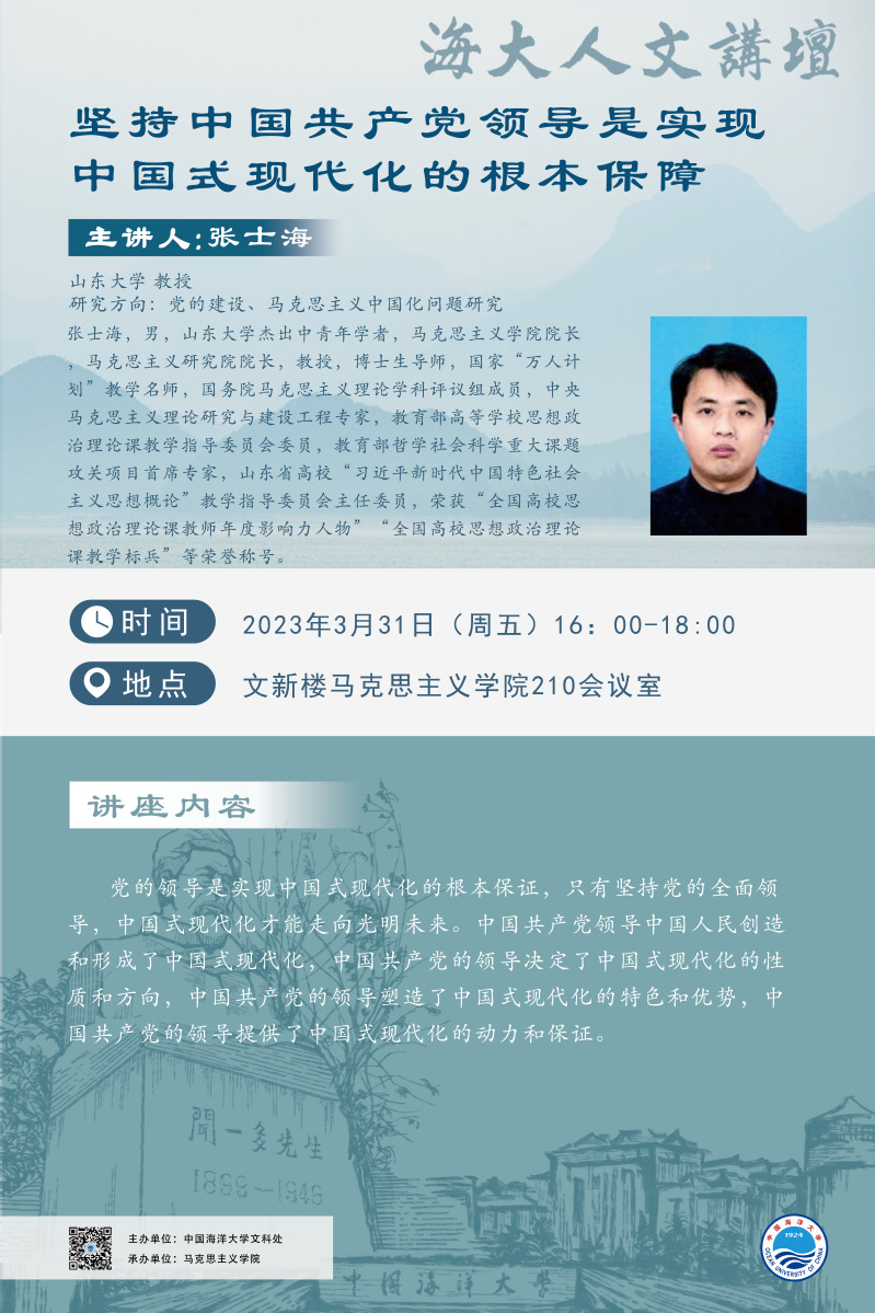 海大人文講壇2023年第12講-張士海:堅持中國共產黨領導是實現中國式現代化的根本保障