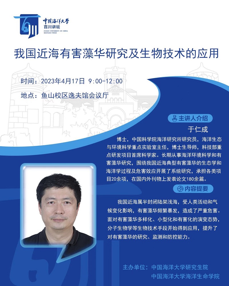 研究生百川講壇第202講-于仁成:我國(guó)近海有害藻華研究及生物技術(shù)的應(yīng)用