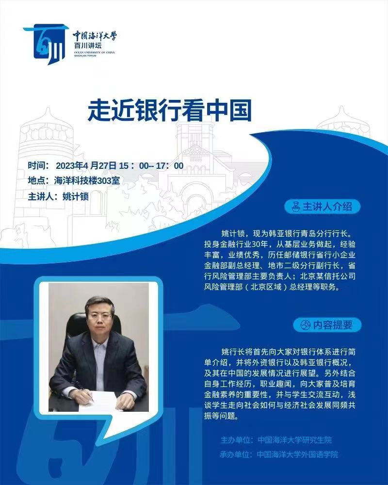 研究生百川講壇第206講-姚計鎖:走近銀行看中國