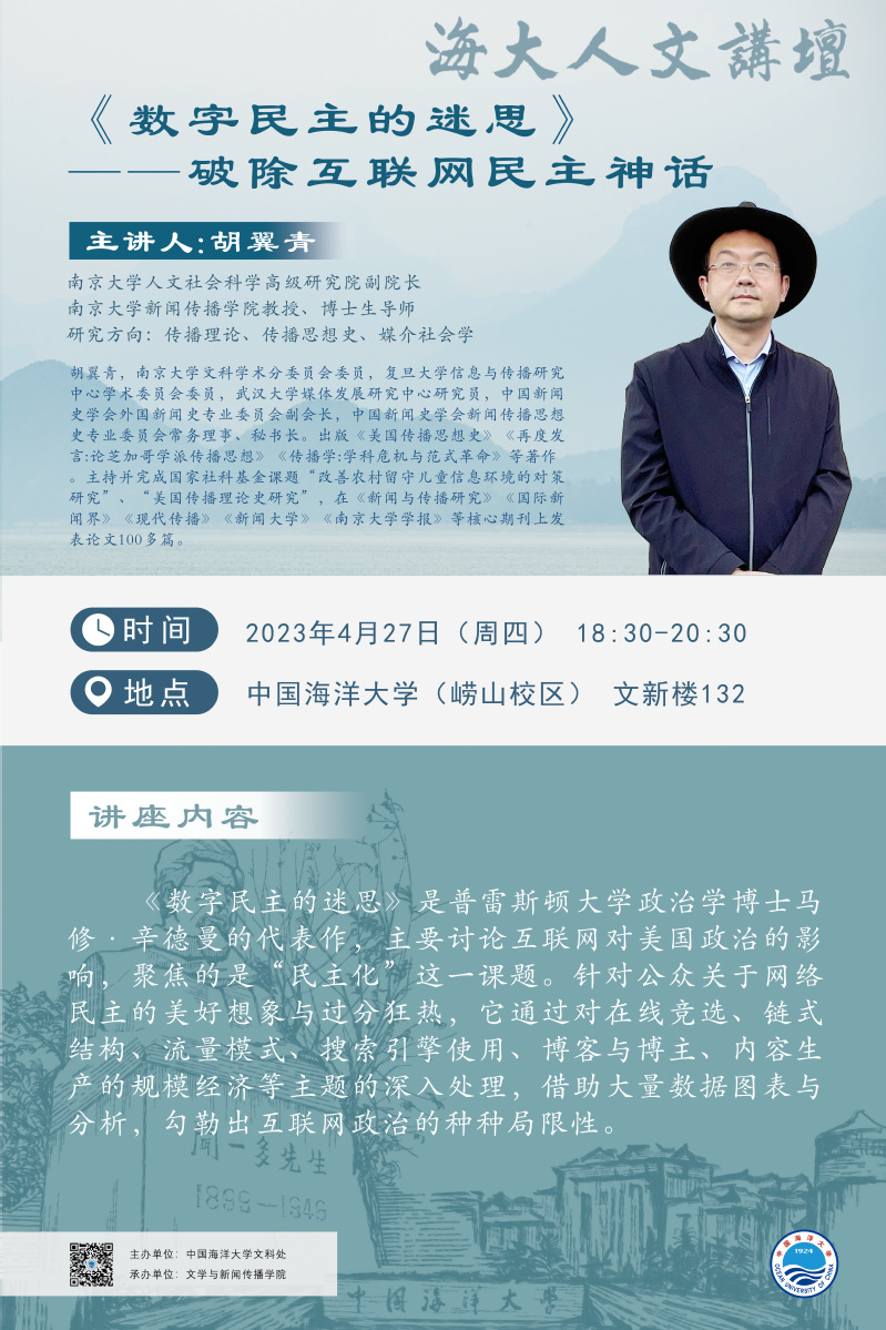 海大人文講壇2023年第22講-胡翼青:《數字民主的迷思》——破除互聯網民主神話