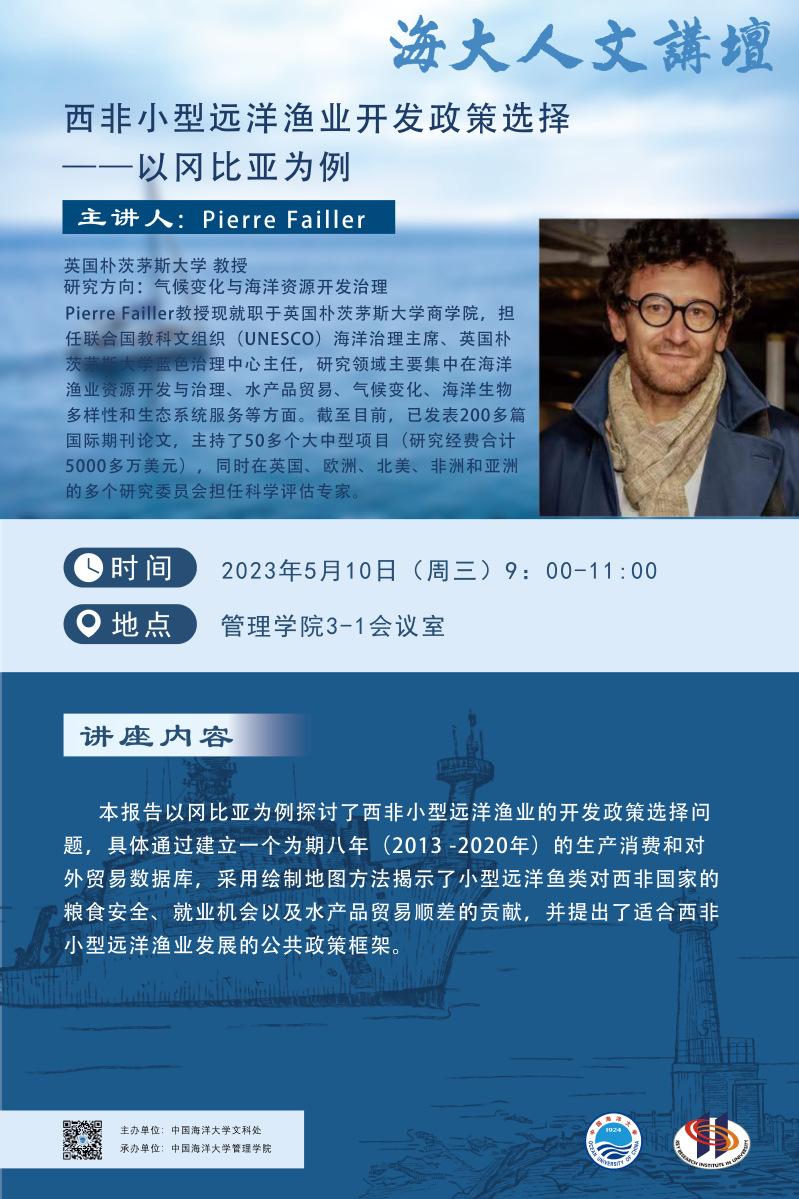 海大人文講壇2023年第25講-Pierre Failler:西非小型遠(yuǎn)洋漁業(yè)開(kāi)發(fā)政策選擇——以岡比亞為例