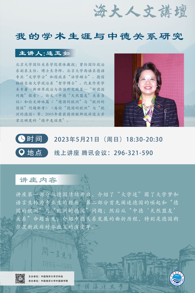 海大人文講壇2023年第30講-連玉如:我的學術生涯與中德關系研究