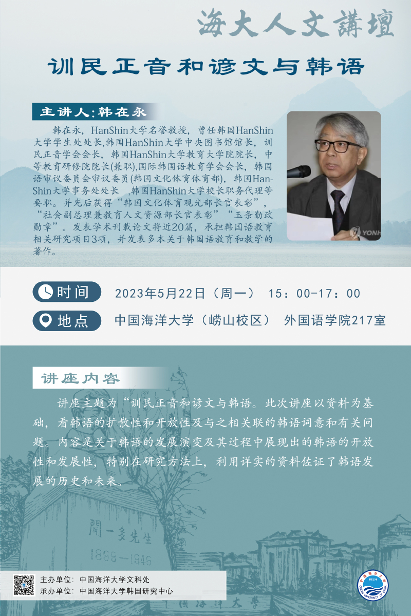海大人文講壇2023年第32講-韓在永:訓(xùn)民正音和諺文與韓語(yǔ)
