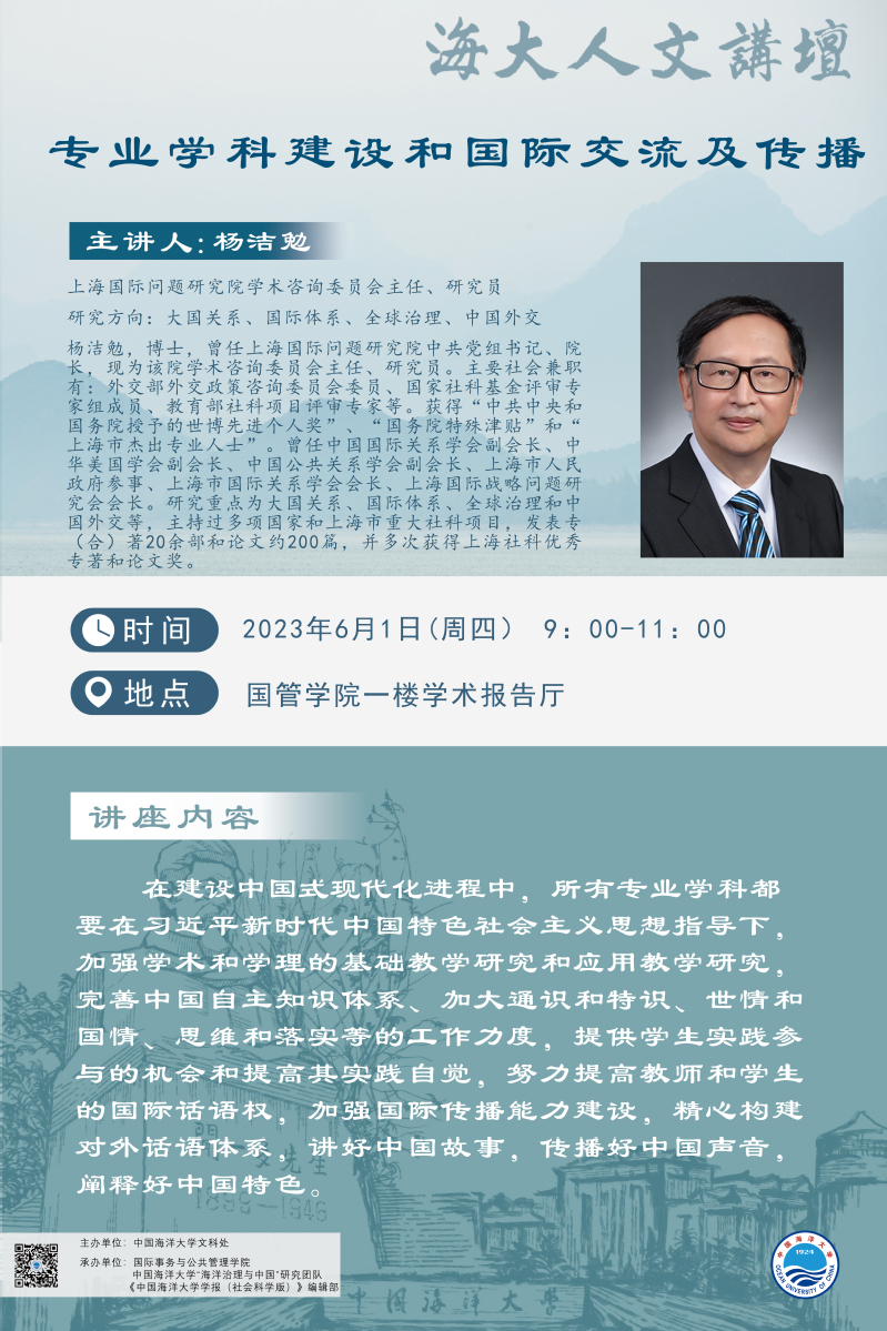 海大人文講壇2023年第36講-楊潔勉:專業學科建設和國際交流及傳播