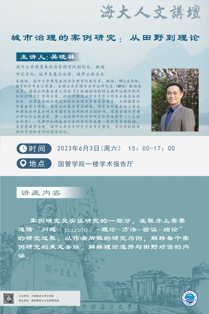 海大人文講壇2023年第38講-吳曉林:城市治理的案例研究:從田野到理論