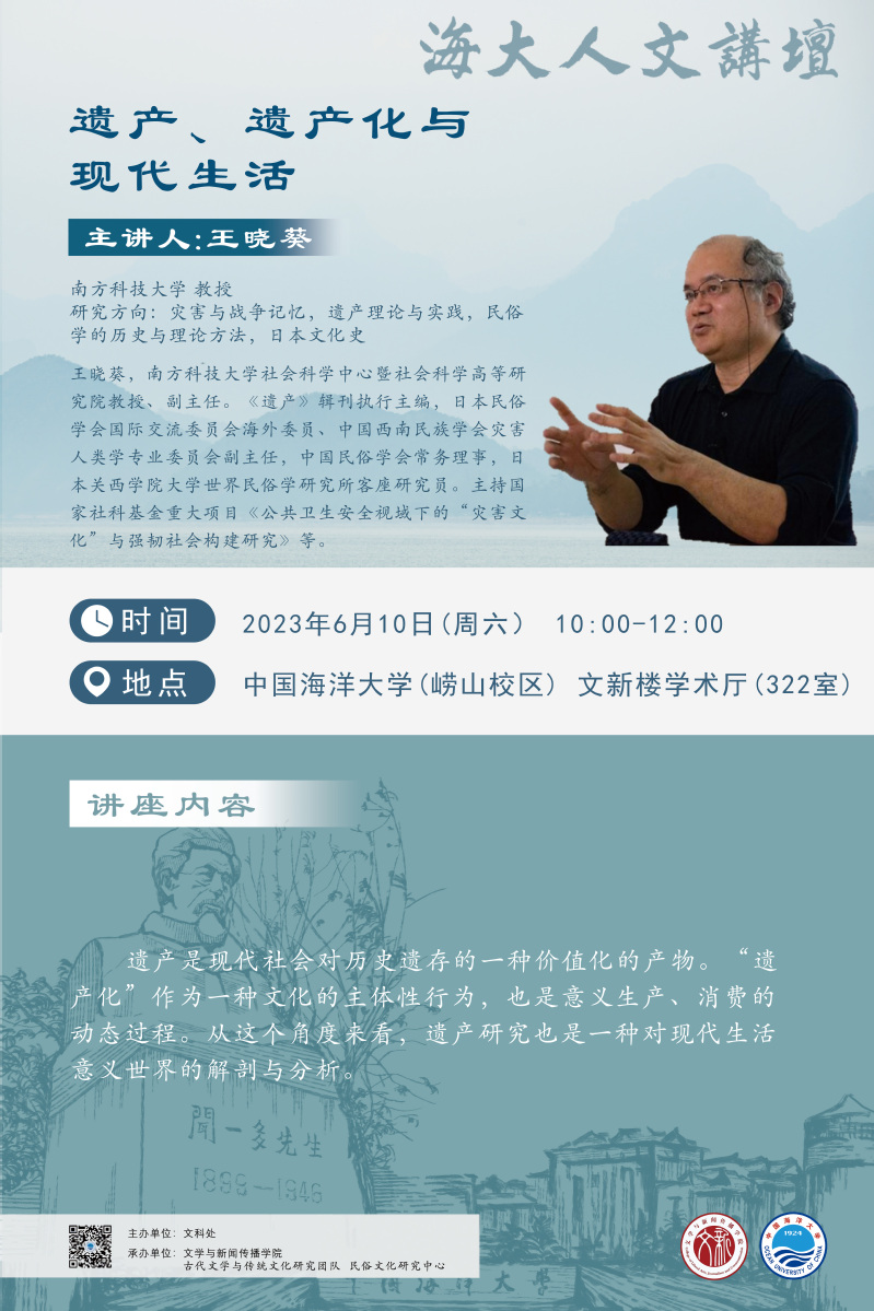 海大人文講壇2023年第40講-王曉葵:遺產、遺產化與現代生活