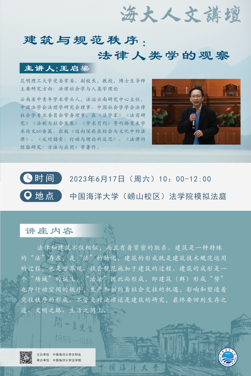 海大人文講壇2023年第43講-王啟梁:建筑與規范秩序:法律人類學的觀察