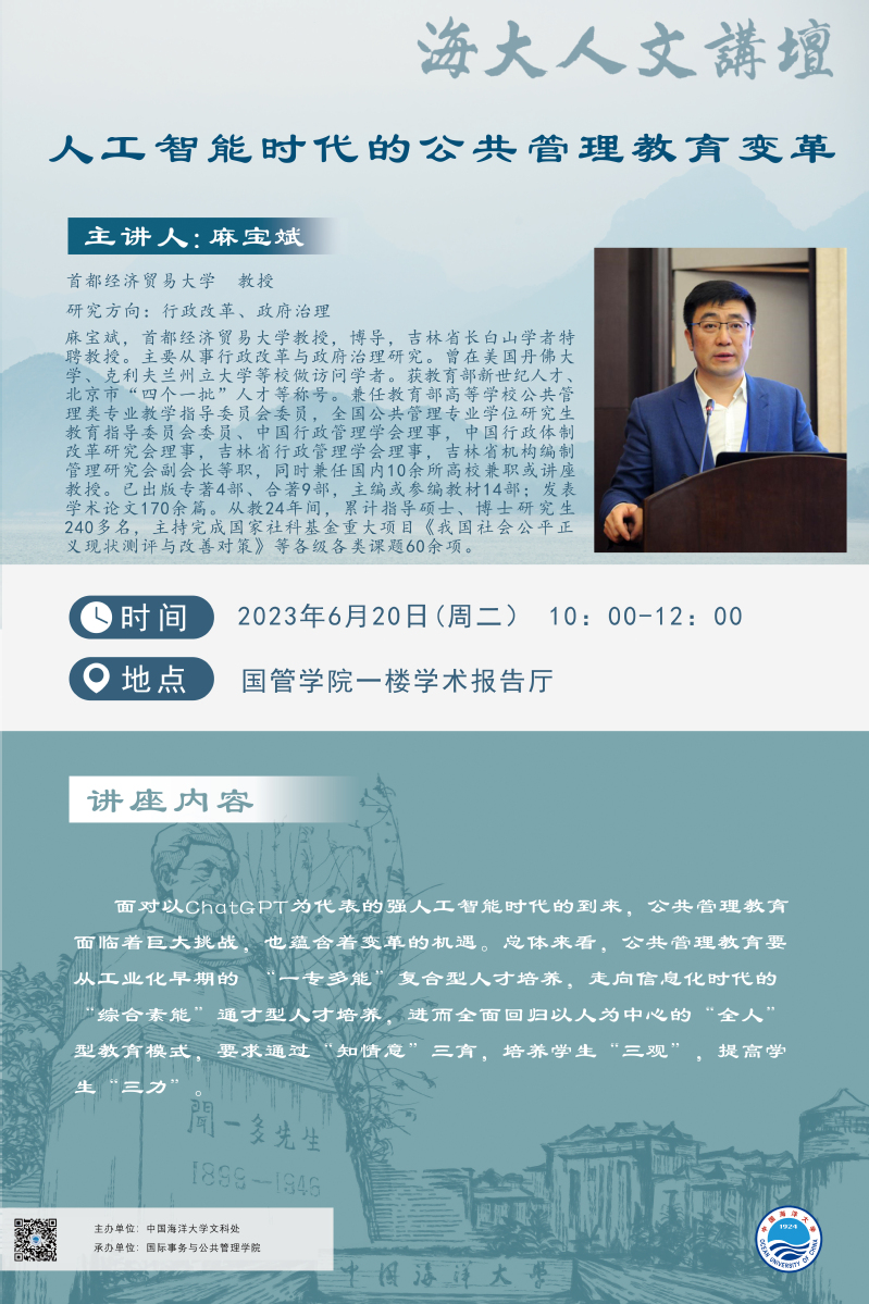 海大人文講壇2023年第47講-麻寶斌:人工智能時代的公共管理教育變革