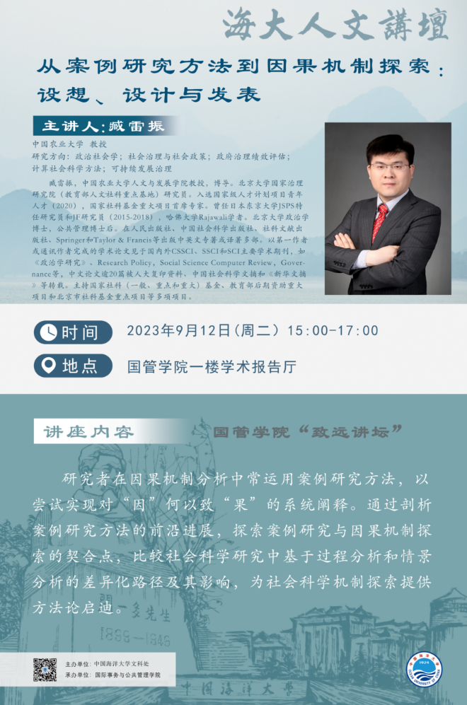 海大人文講壇2023年第61講-臧雷振:從案例研究方法到因果機(jī)制探索:設(shè)想、設(shè)計(jì)與發(fā)表