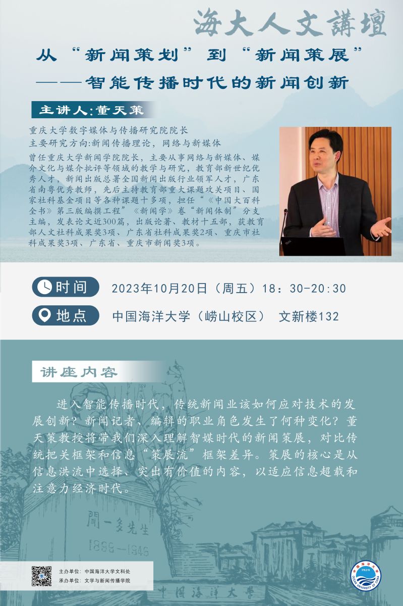 海大人文講壇2023年第73講-董天策:從“新聞策劃”到“新聞策展”——智能傳播時(shí)代的新聞創(chuàng)新