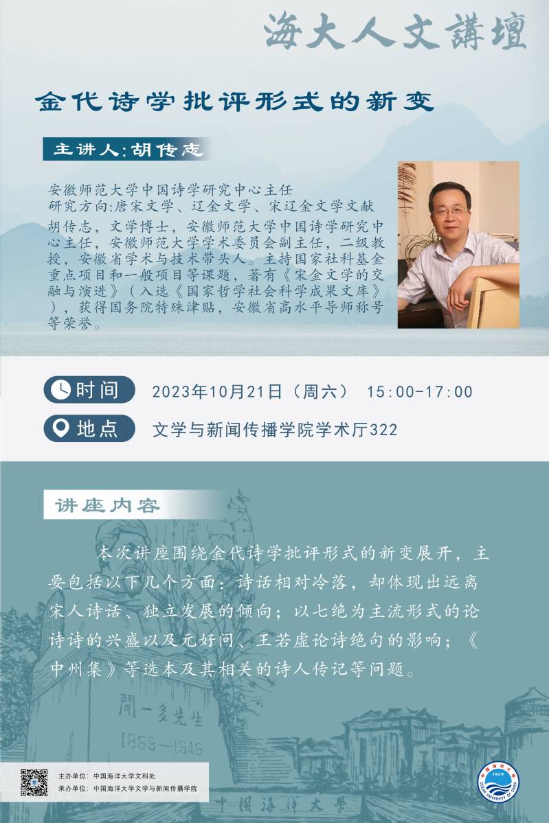 海大人文講壇2023年第74講-胡傳志:金代詩學批評形式的新變