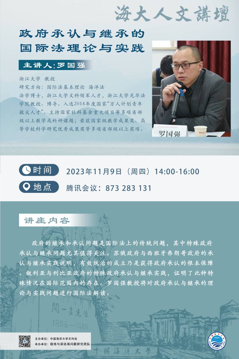 海大人文講壇2023年第81講-羅國強:政府承認與繼承的國際法理論與實踐