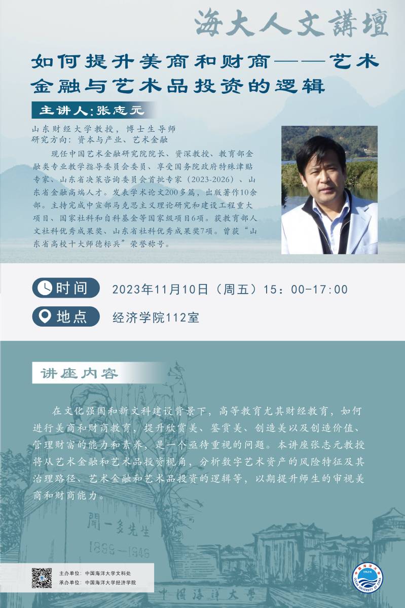 海大人文講壇2023年第83講-張志元:如何提升美商和財商——藝術金融與藝術品投資的邏輯