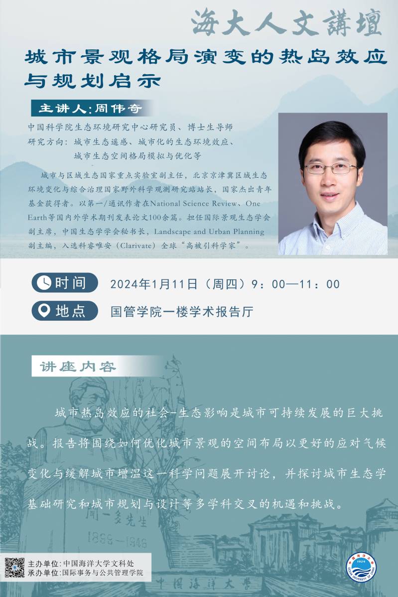 海大人文講壇2024年第1講-周偉奇:城市景觀格局演變的熱島效應與規(guī)劃啟示