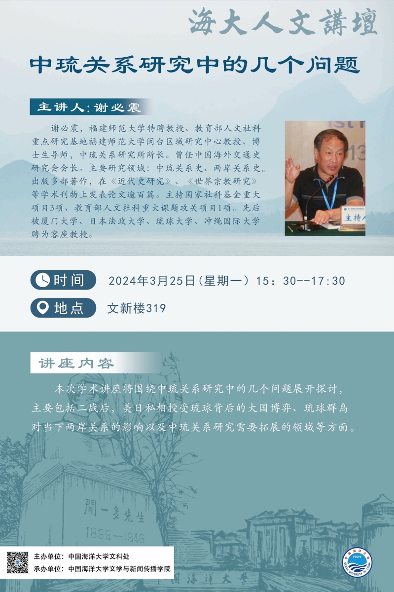 海大人文講壇2024年第7講-謝必震:中琉關系研究中的幾個問題