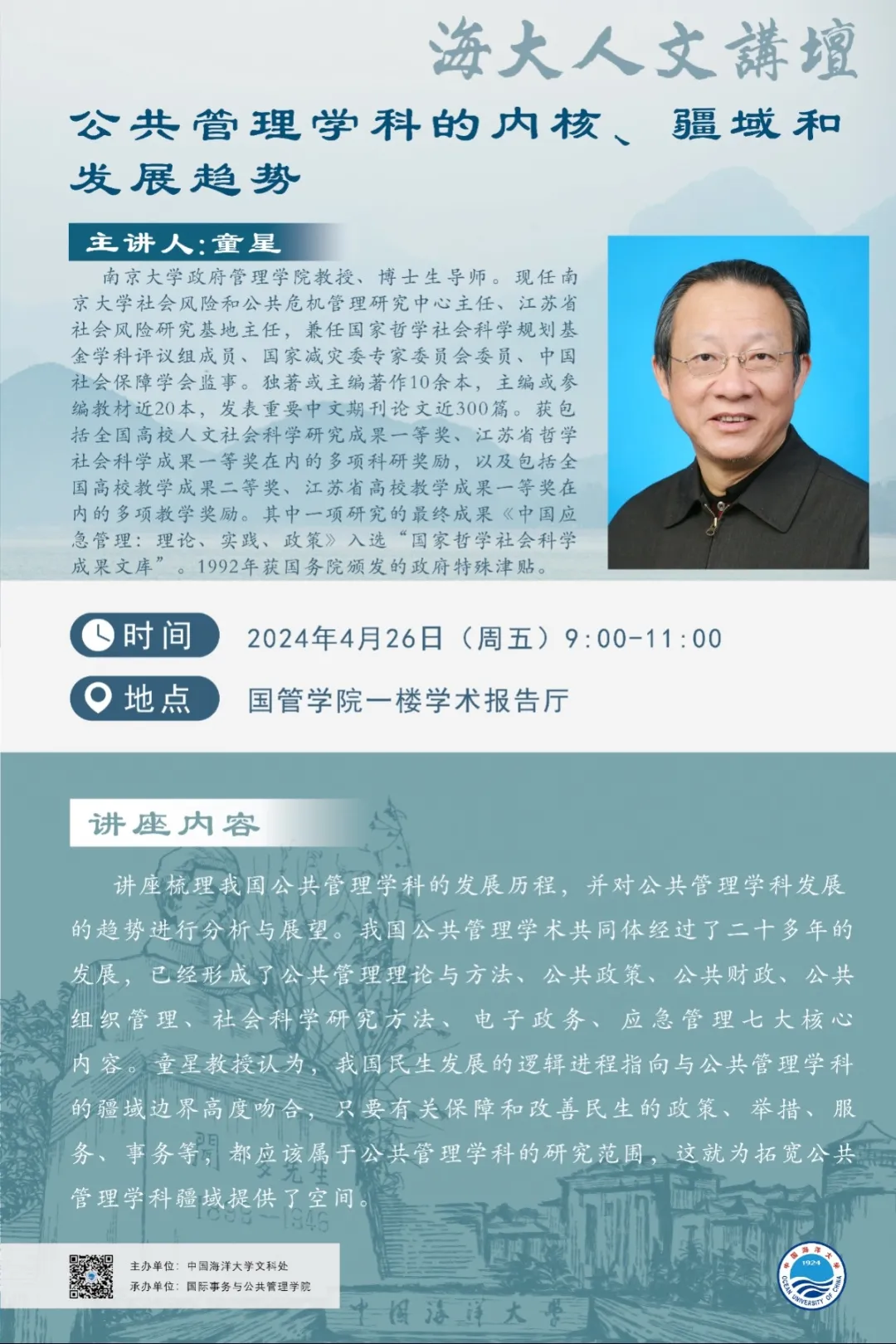 海大人文講壇2024年第15講-童星:公共管理學科的內核、疆域和發展趨勢